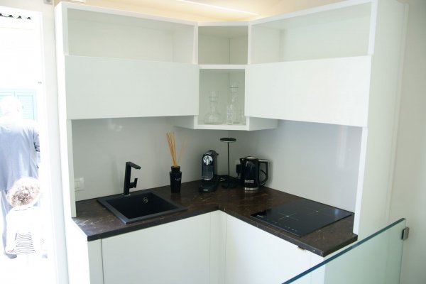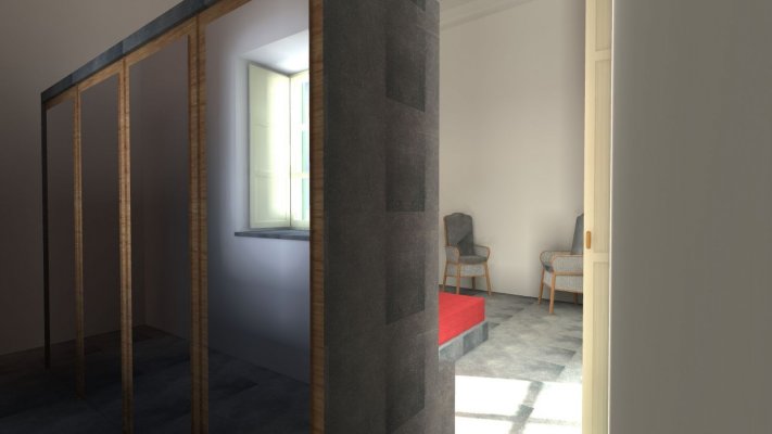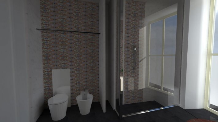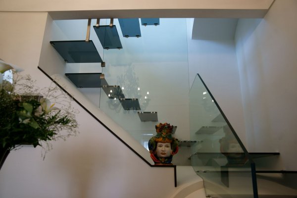 Sono stati progettati i bagni, la cucina e la camera da letto, nonché la scala in vetro.